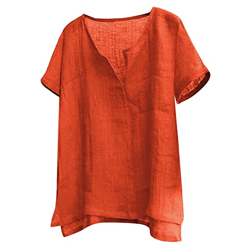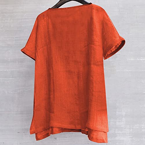 Uomo Cotone Lino Henley Camicia Manica Corta Hippie Casual Comfort Spiaggia Yoga T Shirt con Camicia, Arancione, M