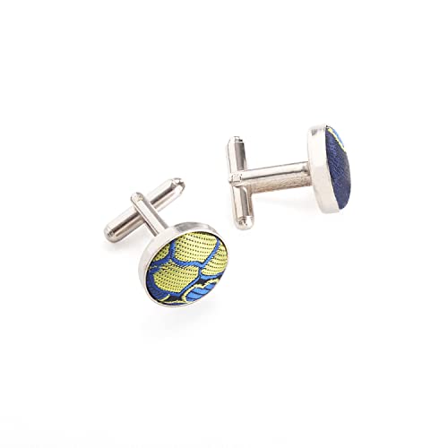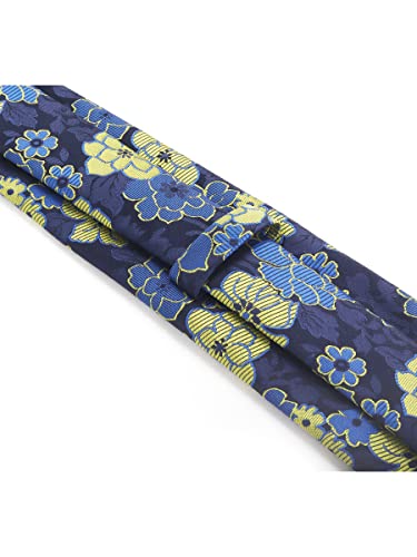 Uomo Cravatta da 8 cm & Gemelli & Fazzoletto da Taschino Classico 3 in 1 Set Cravatta Tessuta Standard Business Casual Matrimonio Formale Cocktail Party - E02 Floreale Blu Scuro & Blu Royal & Giallo