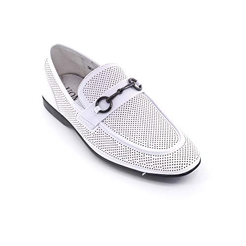 UOMO DESIGN - Mocassino da uomo con fibbia interna in pelle - Marco, Bianco (bianco), 44 EU