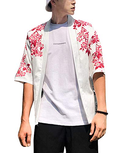 Uomo Kimono Haori Jacket Cloak Giapponesi Cardigan Yukata Capispalla Cappotto Corto Bianco S