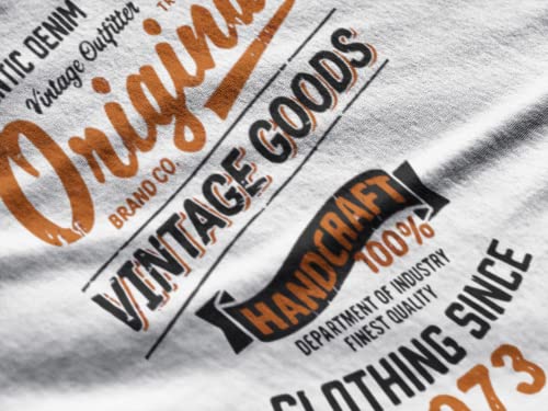 Uomo Maglietta Abbigliamento Vintage Originale dal 1973 - Original Vintage Clothing Since 1973-50 Anni Regali 50° Compleanno T-Shirt con Stampa Grafica Vintage Anno 1973 Bianco L