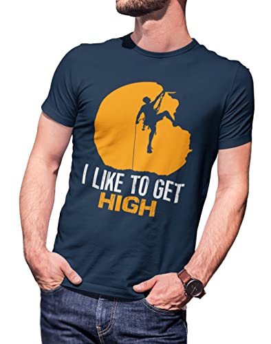 6TN Uomo Maglietta da Arrampicata su Roccia I Like To Get High Regali Divertenti per Gli scalatori (Blu Navy, XL)