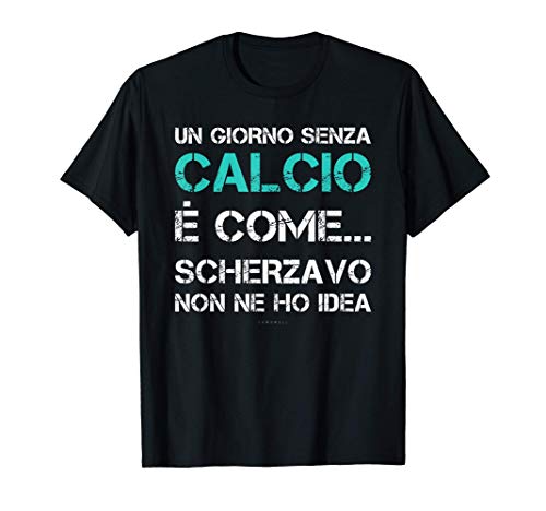 Frase Tee Shirt: Un giorno senza calcio é come. . scherzavo non ne ho idea. Magliette a manica corta regalo ideale per appassionati di football con scritte divertenti e frasi originali, ironiche e simpatiche sul calcio. Magliette per uomo e ragazzo.