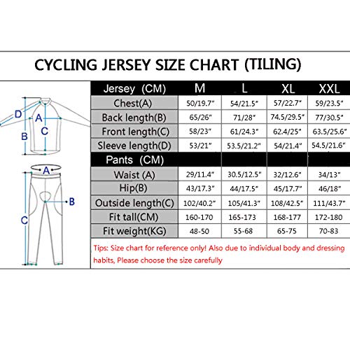 Uomo Manica Manica Lunga Jersey Abbigliamento Set, Ciclismo Jersey Camicia + 3D Gel Imbottito Pantaloni Ciclismo Equitazione Bike Sportswear, 0087, XXL