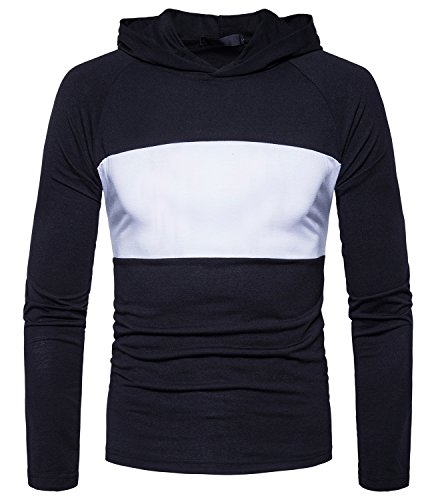 Uomo T-shirt con Cappuccio Felpe Sottile Top Maniche Lunghe (B132 Nero Small)