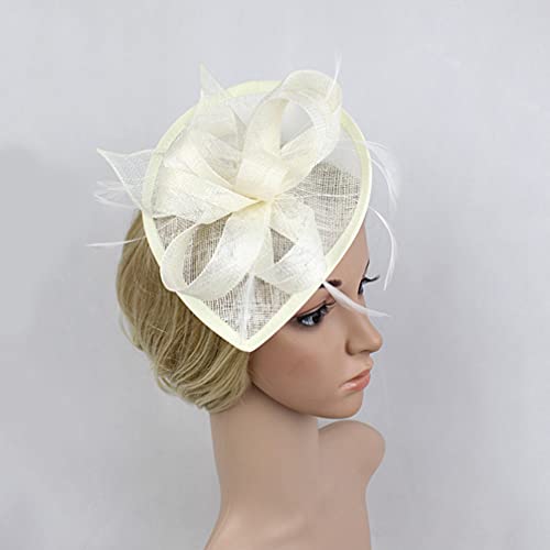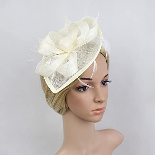 Uonlytech Affinatori Vintage Cappello Anni' 50 Donne Vintage Fascinator Flower Derby Hat Cocktail Tea Party Headwear per Le Donne Festa di Nozze Beige