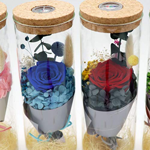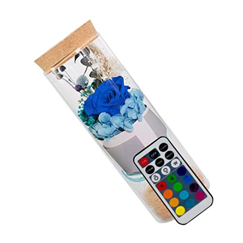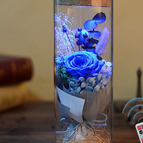Uonlytech Augurando Luce Notturna Bottiglia Rosa in Bottiglia di Vetro Romantico Eterno Rosa Telecomando Lampada Regalo Bottiglia Led per Matrimonio Compleanno San Valentino - Blu