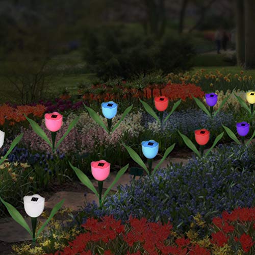 Uonlytech 2 Pz Luce Da Giardino Paesaggistica Lampada Da Prato Fiorita Luci a Led Luce Del Fiore Tulipani Arredamento a Led Pali Leggeri Tulipani All'aperto Torcia Elettrica