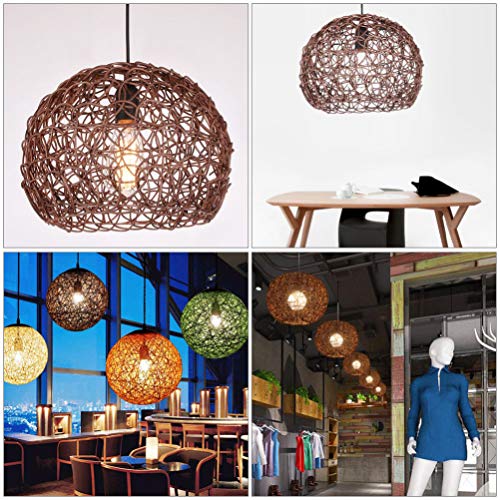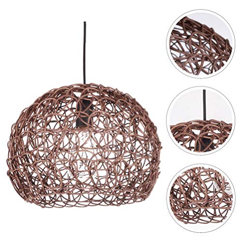 Uonlytech Plafoniera 1 Pc Lampadario in Vimini Paralume in Rattan Lampada Sospensione Vintage Pendente Apparecchio Di Illuminazione a Soffitto Filo Metallico Rurale Lanterna Di Bambù
