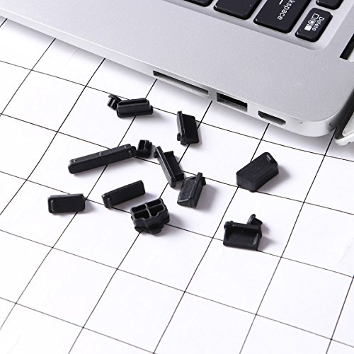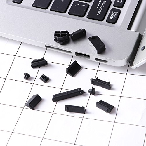 Uonlytech Tappi Antipolvere in Silicone Protezione Antipolvere per Porte e Ingressi Computer PC 13 PCS (Nero)