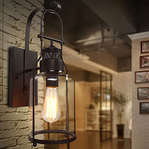 Uook Industriale Vintage Outdoor E27 Applique in alluminio Edison Glass Impermeabile IP65 Applique Applique Black Portico Luci Patio Balcone Garden Landscape Lights Retrò Loft Applique Coffee