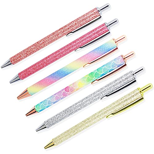 Uooker 6PCS Penna a Sfera in Metallo Retrattile con Penne a Sfera Brillanti ed Eleganti con Corpo glitterato, Inchiostro Nero 1 mm, per Donne, Forniture Scolastiche e per Ufficio, Affari