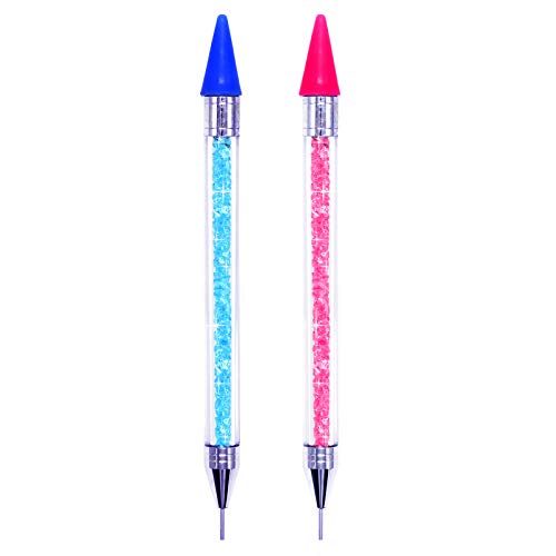 Design a doppia testa: la punta in cera autoadesiva rende gli strass su tela senza argilla;