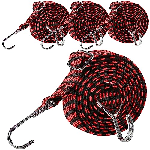 UOOLI Cordini elastici con ganci regolabili, confezione da 4 cinghie elastiche resistenti da 1 m, per portabagagli, tende da campeggio, auto, portapacchi, Rosso