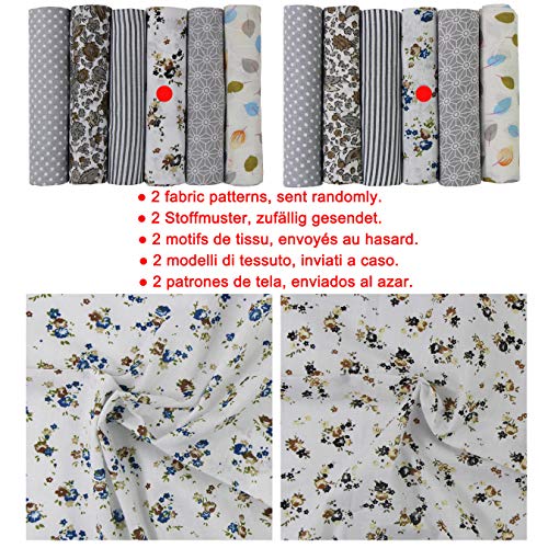 UOOOM 6pcs 50 x 50 cm patchwork cotone Tessuto DIY Handmade Quilting Tessuto motivi diversi (Tone-Gray)