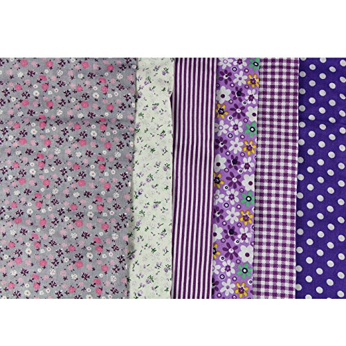 UOOOM 6pcs 50 x 50 cm patchwork cotone Tessuto DIY Handmade Quilting Tessuto motivi diversi (Viola)