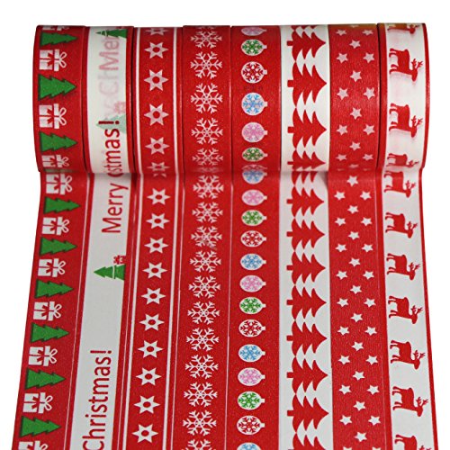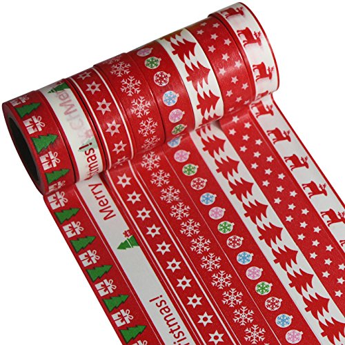 UOOOM 8 Rotoli Washi Tape Natale Christmas Decorativo Nastri Adesivi 15mm x 10m (Design 9050)
