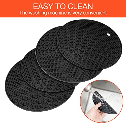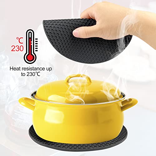Uootach Set di 2 Sottopentola Rotondi in Silicone, Sottobicchiere in silicone antiscivolo, Presine in silicone Resistente, impermeabile e antiscivolo, per pentole, padelle, teiere e ciotole(Nero)