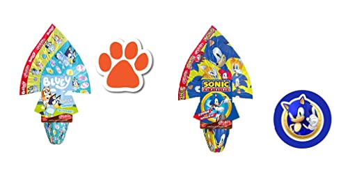 2 x Uova di Cioccolato Bluey e Sonic con due magnifici magneti Pasqua 2023