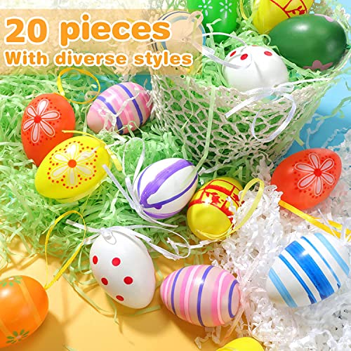 Uova di Pasqua, 20 Pezzi Uova Pasquali da Appendere, Uova Pasquali Decorative con La Corda, Colorate Decorazioni Pasquali, Uovo di Pasqua In Plastica, per la Decorazione e Regali del Partito di Pasqua