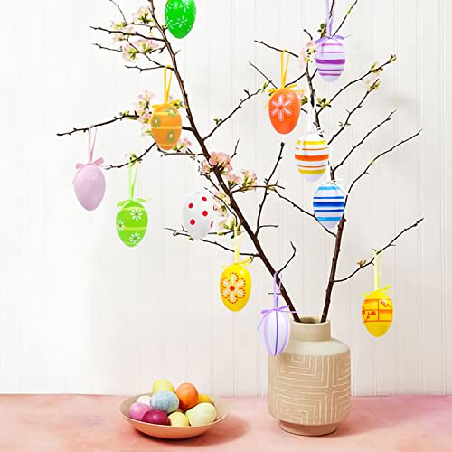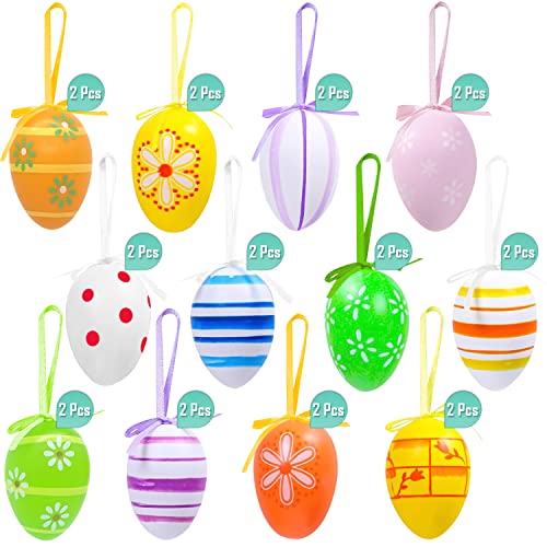 24 Uova pasquali da Appendere a Forma, in plastica Multicolore, Decorazione per Albero di Pasqua, Uova dipinte a Mano, Decorazione Fai da Te con Vari Stili a Strisce per Decorazioni pasquali