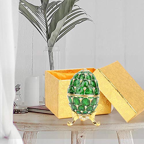 Uovo di Pasqua Mini Faberge Dipinto a Mano smaltato con Smalto Ricco e Scintillante Scatola di ciondoli per Gioielli con Strass, 4 Colori(Verde)