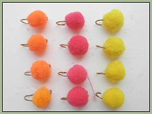 Uovo pesca mosche, confezione da 12, rosa, arancione e giallo, trota, salmone, misti 8/10