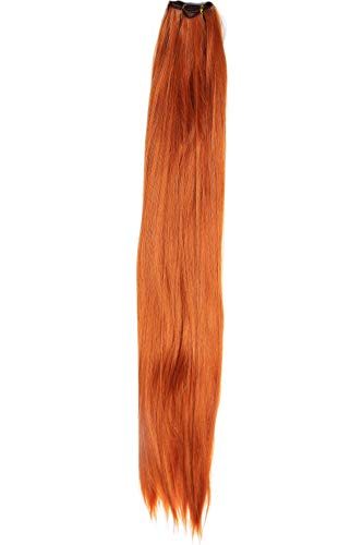 Extension larga dai 250 ai 260 cm e lungo dai 75 ai 77,5 cm, di fibra sintetica, per ulteriore modifica di parrucche e toupet. La fibra è resistente al calore, plasmabile fino a 180 gradi Celsius. Disponibile in diversi colori- qui in un rosso aranciato chiaro/rosso ramato.