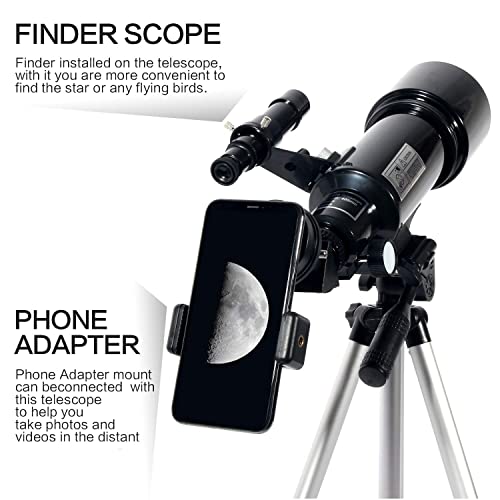 Upchase Telescopio Astronomico, 400/70mm Telescopio Rifrattore, Adatto per Adulti-Bambini-Principianti, Facile da Montare e Utilizzare, Osservare La Luna,Stelle,Paesaggio, Regalo di Natale per Bambin