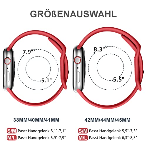 Upeak 6 Pezzi Cinturini Sportivi Compatibile con Cinturino Apple Watch 44 mm 45 mm 42 mm, Cinturino di Ricambio in Morbido Silicone per iWatch Ultra SE Serie 9 8 7 6 5 4 3 2 1, L,Colore Accattivante 1