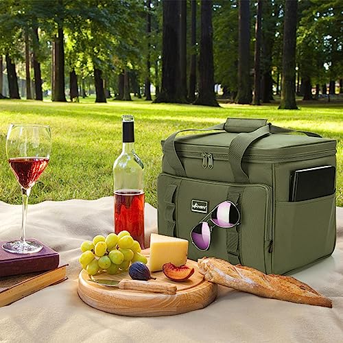 Upeelife 24L Borsa Termica, Pieghevole Borsa Frigo Isoterma per Alimenti, Grande Borsa Porta Pranzo Isoterma con Tracolla per Famiglia All'aperto Picnic Barbecue Campeggio Lavoro (Verde)