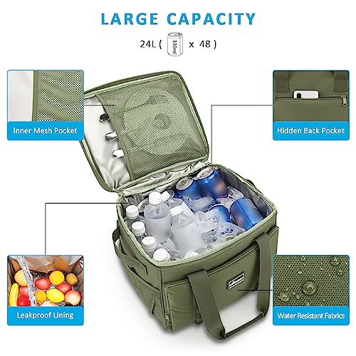 ✅【Grande capacità e pieghevolezza】: L'intera borsa frigo misura 13,4 "x10,6 "x10,6" (L x W x H) e ha una grande capacità di 24L per conservare 34x330ML di lattine. Il meglio è che può essere ripiegata, immaginate una grande borsa da picnic ripiegata da voi: 13,78" x 9,84" x 3,93" (L x W x H), risparmiando spazio, il che significa che potete riporla nel bagagliaio di un'auto completamente carica o in qualsiasi angolo della vostra casa.