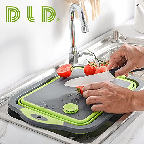 Upgrade - D L D Collapsible Cutting Board with Colander Containers, Foldable Food Grade Silicone Dish Tub Chopping Board, Washing Basin Draining Basket Strainer for Home Kitchen Camping Picnic BBQ