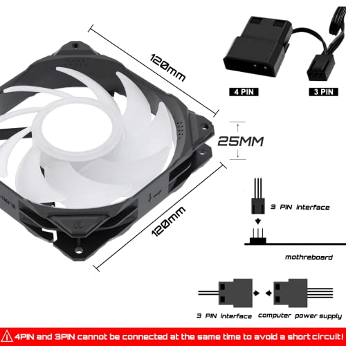 UpHere 3PIN Ventole LED Bianco a Specchio da 120mm Ventola di Raffreddamento Silenziosa per PC Computer Gaming,UA01WT3-3