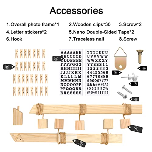 ❥ Comodo per cambiare spesso le foto esposte -- Con 30 mollette in legno, è pratico e veloce per mettere e togliere foto in pochi secondi a differenza delle solite cornici foto da parete