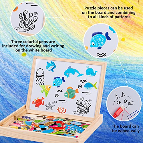 Uping Puzzle Magnetico Legno 130 Pezzi con Lavagna a Double Face per Bambini 3 Anni