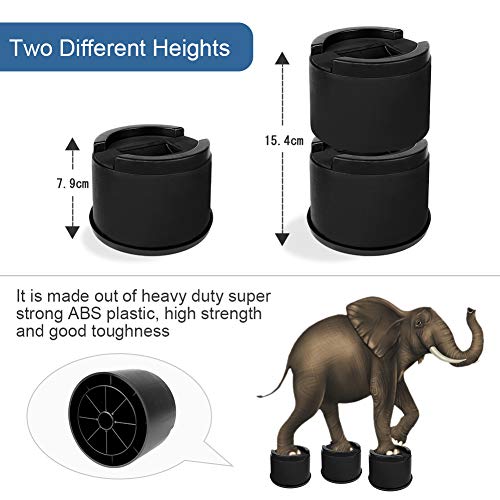 Uping Rialzi per Letto Rialzi per Mobili Alzare Letto Aggiungi Altezze Regolabili di 7,9CM o 15,4CM (Nero)