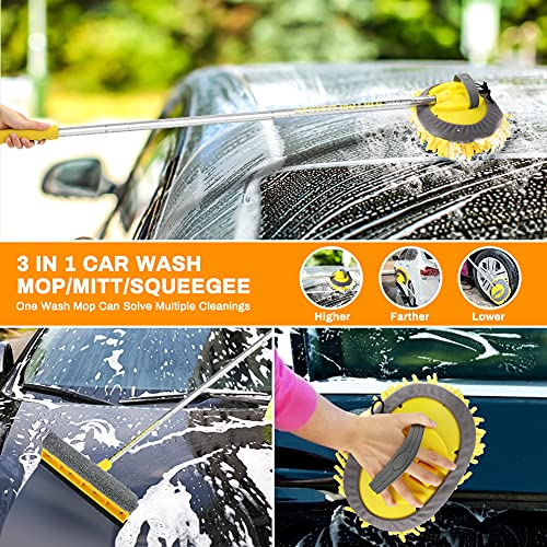 Upkey 3 in 1 spazzolone Lavaggio Auto Spazzola Lavaggio Auto con Manico Lungo in Alluminio da 152cm, Lavaggio Auto con 2 testine per mocio in Microfibra riutilizzabili in ciniglia (Giallo)