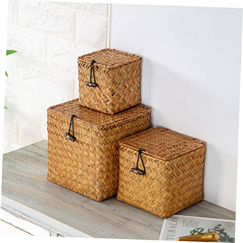 UPKOCH 2 Pezzi Scatola Cestino Di Vimini Coperchio Cestino Organizzatore Da Tavolo Organizzatore Di Alghe Cestino Di Vimini Cubetti Di Rattan Scaffale Cestino Giocattoli Organizzatore Di