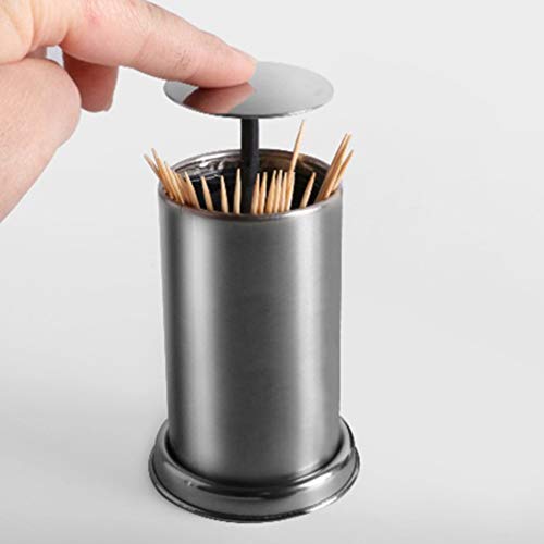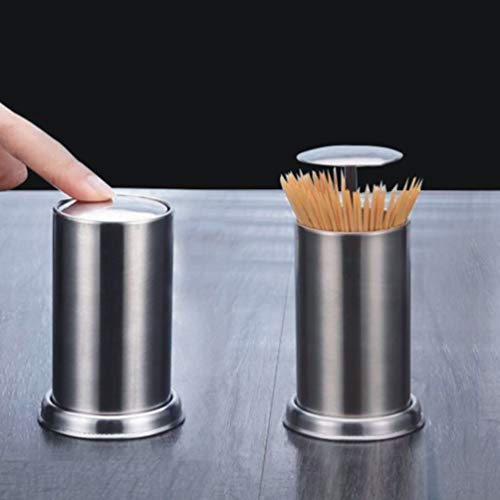UPKOCH - Porta stuzzicadenti automatico in acciaio inox con supporto rotondo, contenitore a spinta per casa, hotel, ristorante