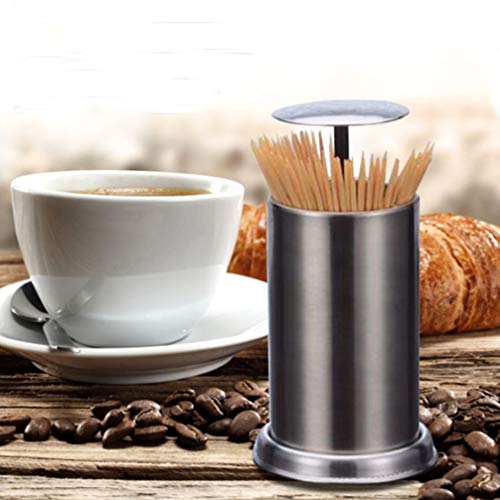 Il dispenser di stuzzicadenti rotondo resistente alla corrosione e antiruggine può prendere lo stuzzicadenti a vista grazie al design a pressione. Può essere usato come un ornamento o un elemento pratico a casa.