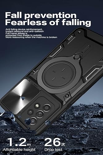 UPLAI Cover per Samsung Galaxy A52s 5G/Samsung Galaxy A52(4G/5G), Ultra Sottile Antiurto Armatura Custodia con Diapositiva Telecamera Cover e Magnetica Kickstand, Premio PC+TPU Durevole Caso.Nero