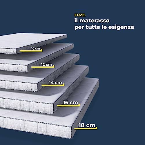 ECCELLENZA ITALIANA: Il materasso Fuze è stato interamente prodotto in Italia da un'azienda leader nel settore con una storia di 90 anni. Questa lunga esperienza si riflette nella qualità del prodotto e nell'assistenza clienti sempre disponibile al dialogo. Scegliendo il Fuze, si acquista non solo un materasso di alta qualità, ma anche un pezzo di tradizione artigianale italiana che si prende cura del vostro riposo e benessere.