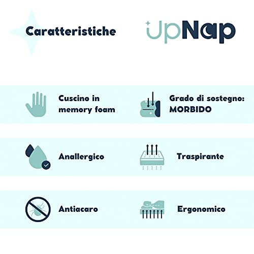 UpNap Nino | Cuscino 100% Memory Foam | Modello Saponetta | Morbido e basso | Prodotto in Italia al 100% | Anallergico e traspirante