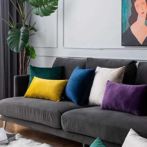 UPOPO Confezione da 2 Federe in Velluto Cuscini Decorativi in Tinta Unita Copricuscini Fodere Quadrate Morbidi per da tiro per Divano Camera da Letto Soggiorno con Cerniere 30 x 50 cm Grigio Chiaro