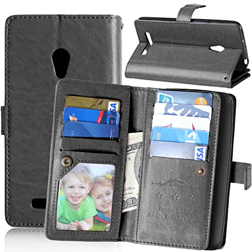 Uposao per ASUS ZENFONE 5 A500KL Custodia PU Pelle NERO multi scomparti carte credito Wallet Flip Cover Foliochiusura magnetica funzione supporto Cover a Portafoglio + stylus pen + spina polvere