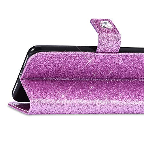 Uposao Compatibile con Huawei P20 Pro Cover Portafoglio a Libro PU Flip Cover 3D Farfalla Fiore Brillantini Glitter Magnetica Case Antiurto Sottile Cover Morbida Silicone Bumper,Viola