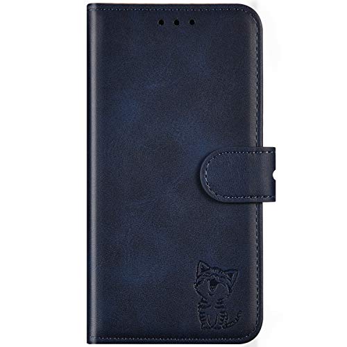 Uposao Compatibile con Huawei P30 lite Cartoon Gatto Serie in Rilievo Flip Caso in Pelle Portafoglio Custodia a Libro Fondina Silicone Slot Schede PU Supporto Stand Cover,Blu