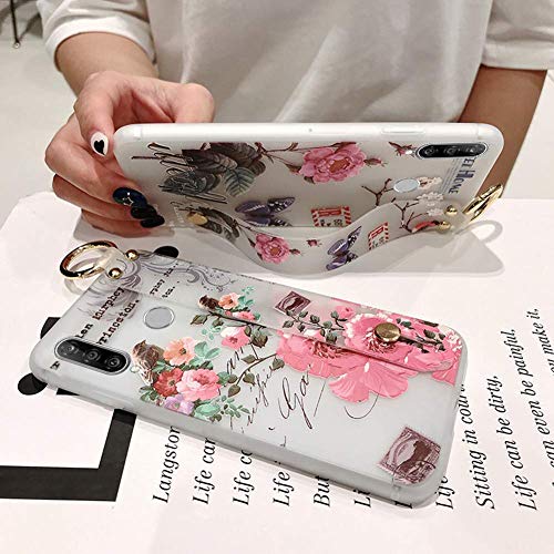 Uposao Compatibile con Huawei P30 lite Trasparente, Supporto Stand, Custodia di TPU Silicone Case Morbido Flip Cover con Sollievo Fiori Modello[Anti-Ingiallimento],Farfalla Blu