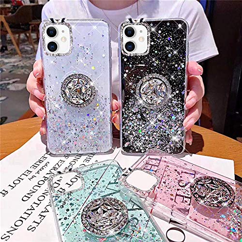 Uposao Compatibile con iPhone 11 Custodia Glitter Ragazza Donna Diamante Lucido Strass Bling Cover Protettiva Cover Trasparente in Silicone Morbida in TPU con Supporto ad Anello,Trasparente